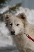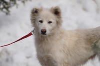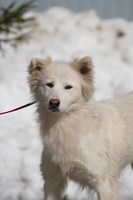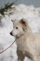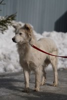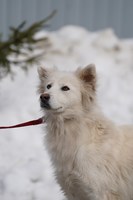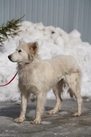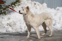 Со слов очевидцев, раньше у собаки был дом, хозяин. Но мужчина ушел на СВО. Собака осталась на улице одна, растерянная и неприкаянная. Нашли её вместе со щеночками, и пока она вот в таком состоянии: истощенная, напуганная, со свалявшейся шерстью. Бедолагу нужно просто отогреть, откормить, привести в порядок шубку - и это будет само совершенство! Белое, пушистое, благодарное создание!