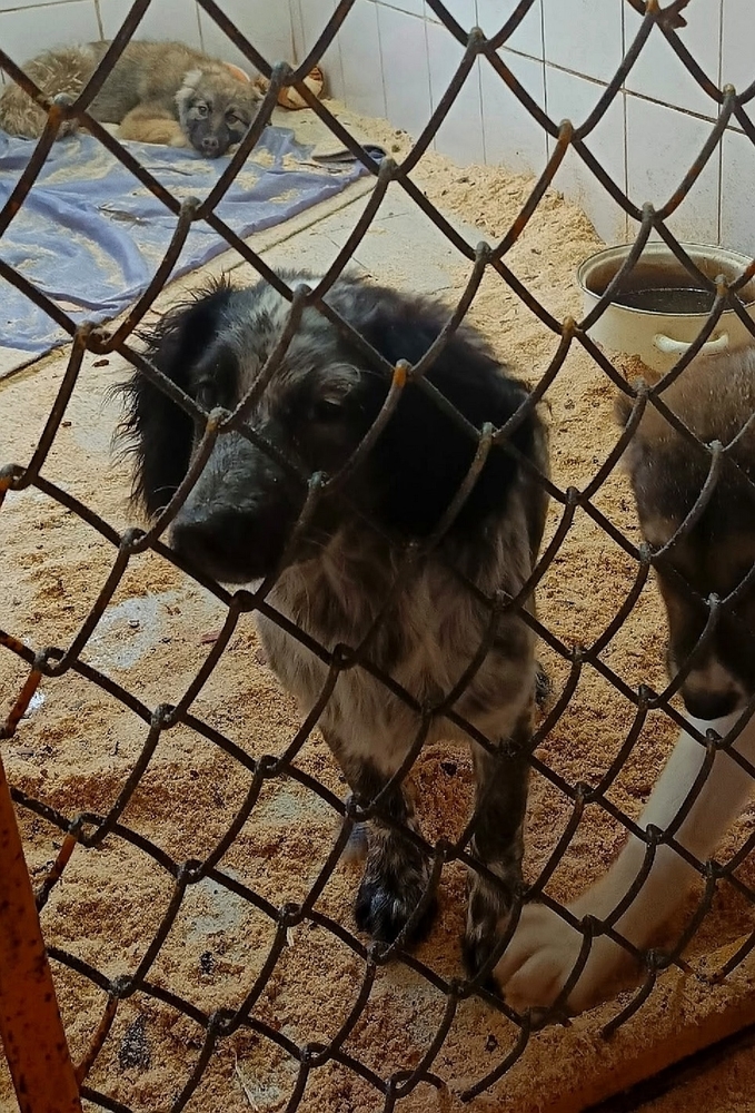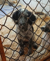Окрас: чёрно - белый, крапчатый, только ушки полностью чёрные
