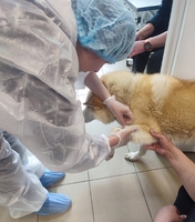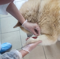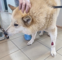 Врач осмотрел нашего пушистого героя:кость не задета, потребуется лишь хирургическая обработка раны.