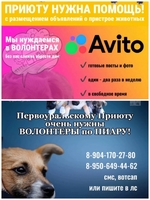 Дней прошло много, а новостей практически нет… Нам очень нужны волонтеры, которые могли бы распространять информацию о наших питомцах по соц.сетям и на «Авито»! Откликнитесь, помогите нам, пожалуйста!